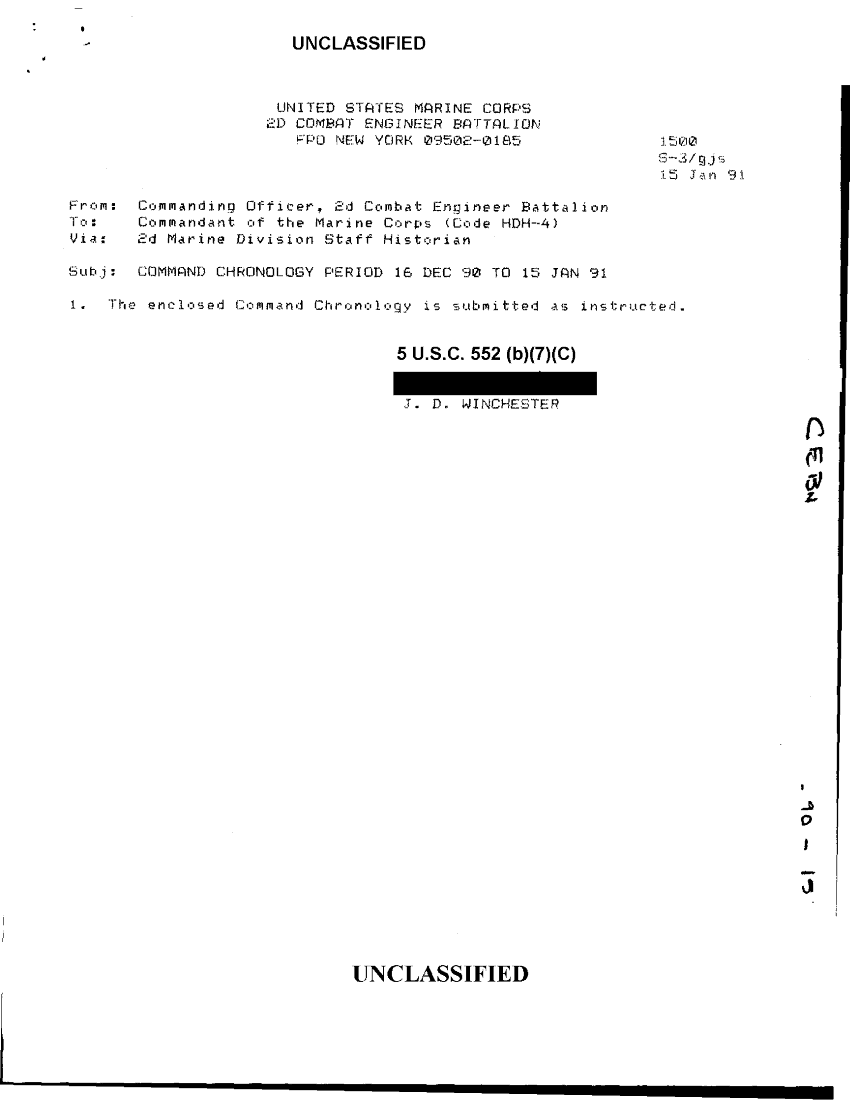 Document 6 f:/Week-42/BX600017/COMMAND CHRONOLOGY 2ND COMBAT ENGINEER BATTALION 16 DEC 1990 - 15 APRIL 1991/command chronology per 16 dec 90 to 15 jan 91 1:11129615125712