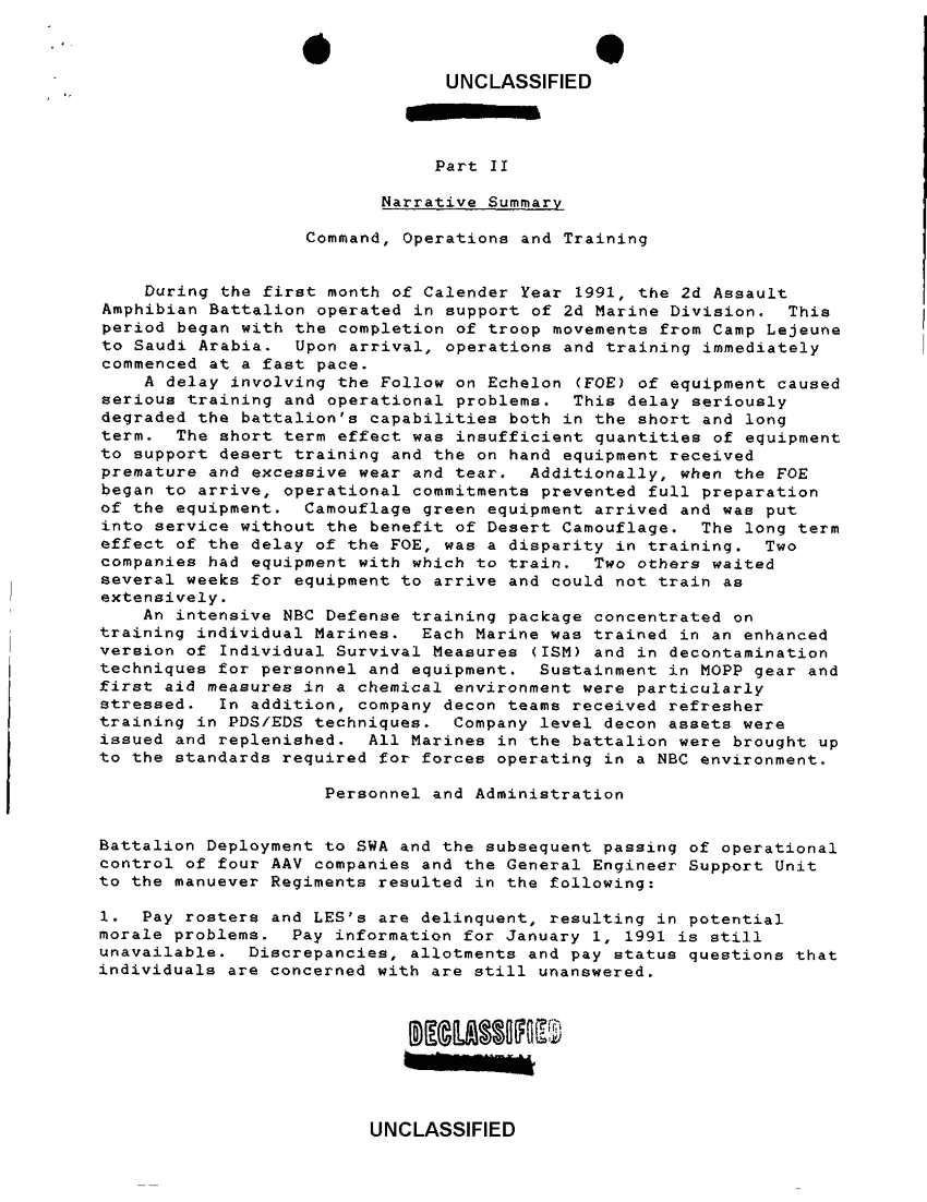Document 8 f:/Week-42/BX600017/COMMAND CHRONOLOGY 2ND ASSAULT AMPHIBIAN BATTALION JAN - FEB 1991/command chronology for the period 1 to 31 jan 91:11129615130115