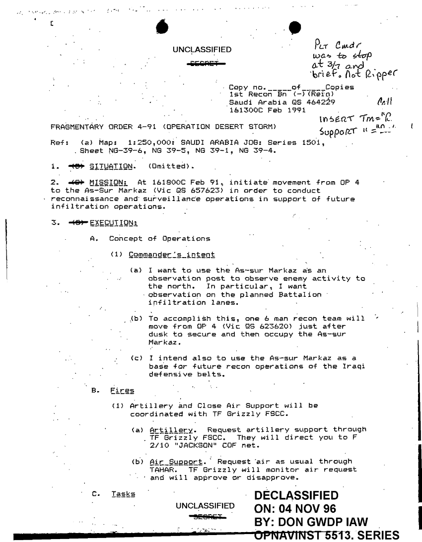 Document 5 f:/Week-43/BX600056/1ST MARDIV JOURNAL ENTRIES 3282-3412 SEC 3 OF 4 FEB 91/execution checklist:11129615130921