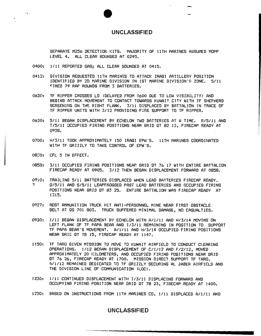 Document 14 f:/Week-42/BX600057/I MEF ACCOUNTS OF COMBAT ACTION/11th marines oper ds summary of significant even:11129615131224