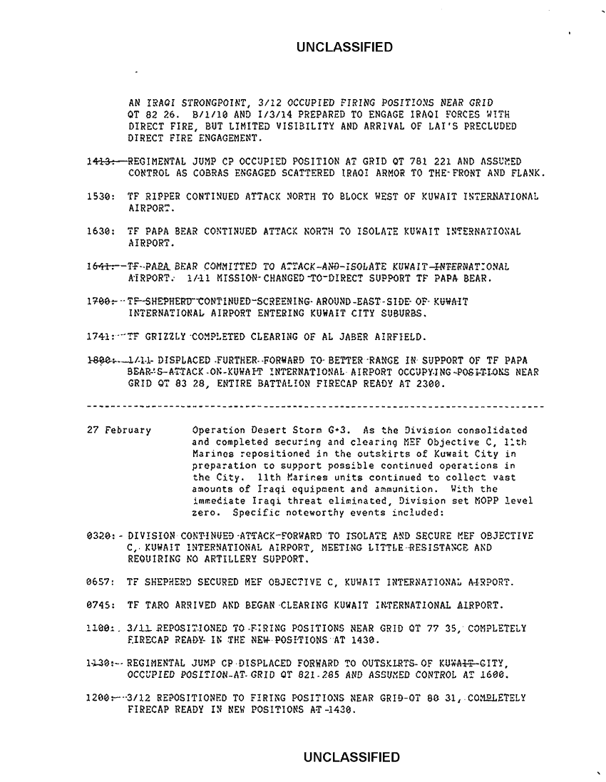 Document 16 f:/Week-42/BX600057/I MEF ACCOUNTS OF COMBAT ACTION/11th marines summary of significant events:1122961652212