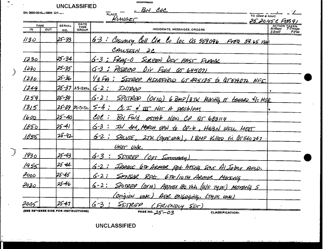 Document 8 f:/Week-42/BX600017/COMMAND CHRONOLOGY 2ND LIGHT ARMORED INFANTRY BATTALION JAN - MAR 1991/2d lai bn daily journal 25feb91:11229616522812