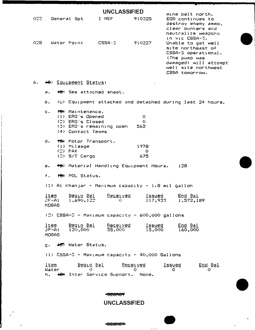 Document 6 f:/Week-42/BX600051/8THENGRSPTBN SITREPS 51-62/engr sitrep rpt no 57 for 27 feb 91 to 28 feb 91:1112961512528