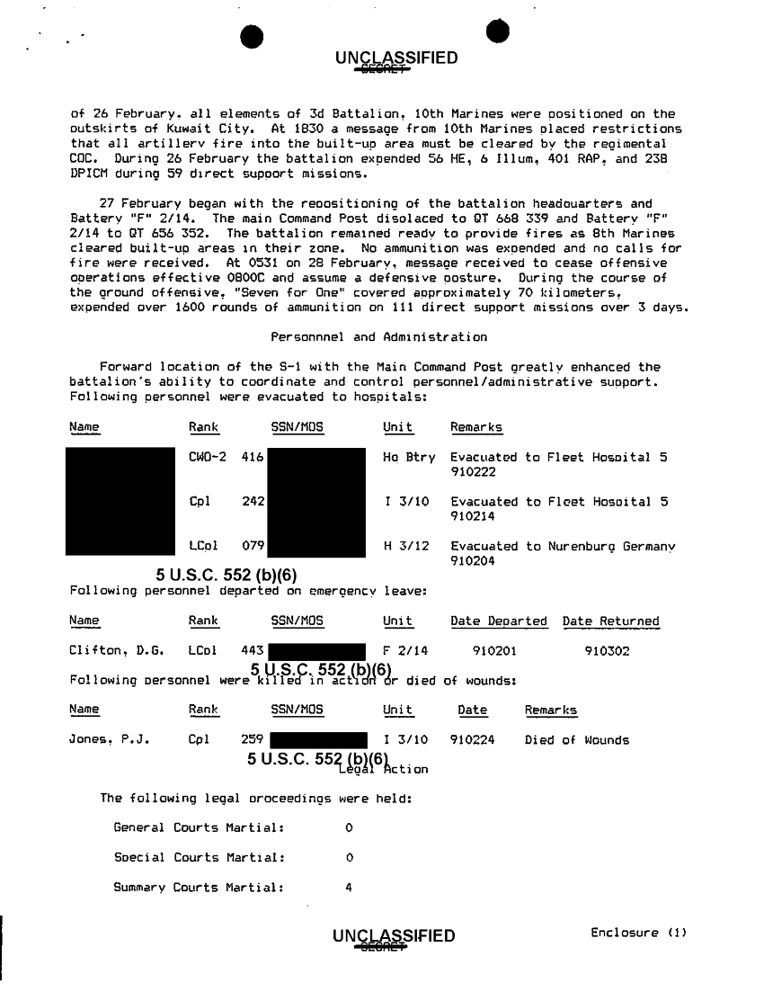 Document 4 f:/Week-42/BX600019/COMMAND CHRONOLOGY 3RD BATTALION 10TH MARINES FEB 1991 2 OF 4/section 2 narrative summary cmd operations and t:11129615125611