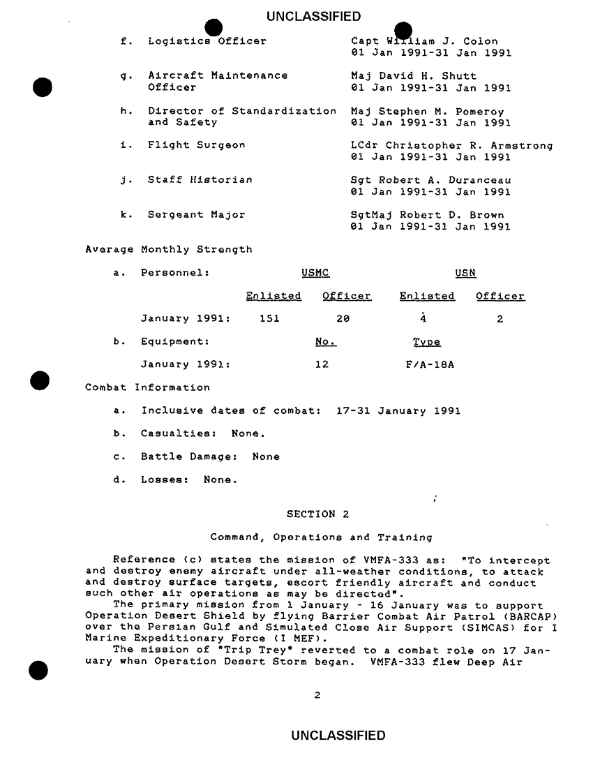 Document 10 f:/Week-38/BX600027/COMMAND CHRONOLOGY VMFA 333 JAN 90 - JUN 91/command chronology for 1 jan 91 to 31 jan 91 dt:1122961652247