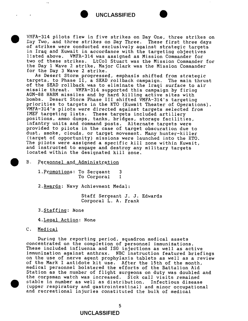 Document 4 f:/Week-38/BX600027/COMMAND CHRONOLOGY VMFA 314 JAN 90 - JUN 91/cmd chronology section ii narrative summary:11229616522914
