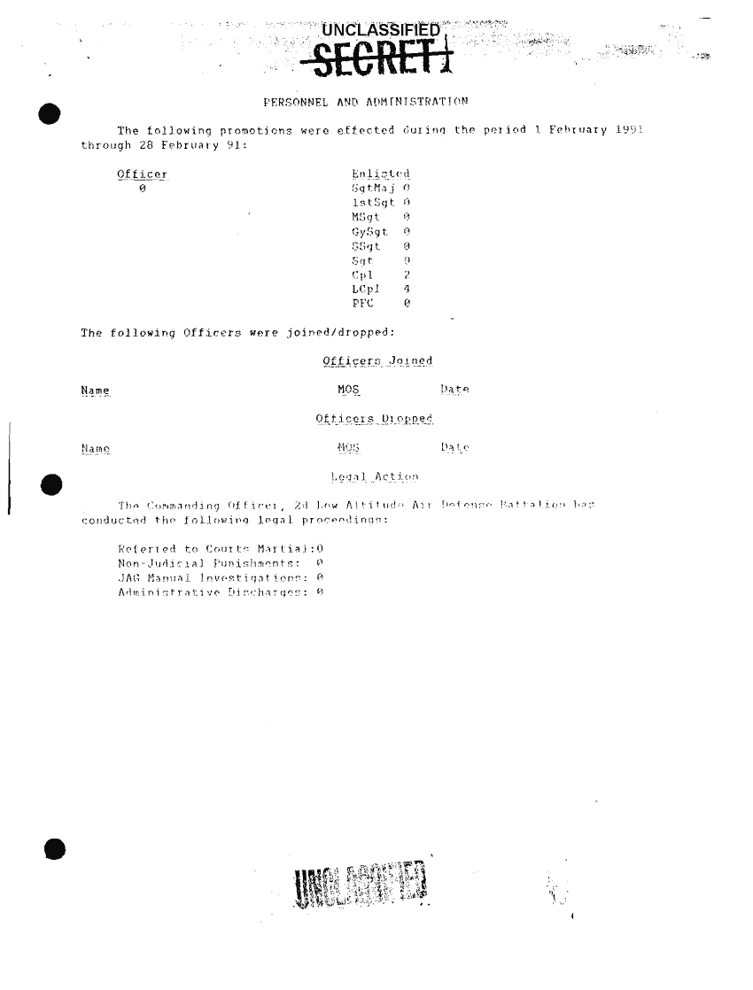 Subject = COMMAND CHRONOLOGY 1 FEB TO 28 FEB 91 2D LAAD BN