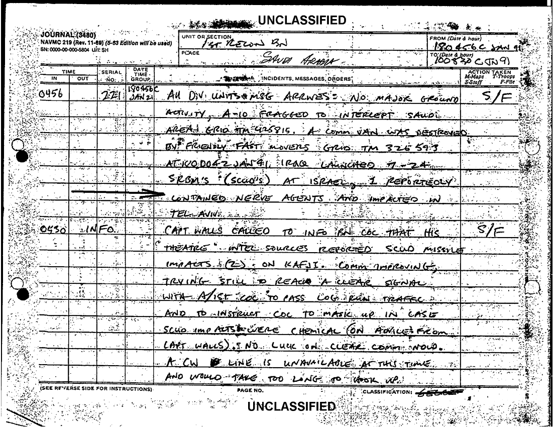 Document 9 f:/Week-38/BX600020/COMMAND CHRONOLOGY 1ST RECONNAISSANCE BATTALION JAN - MAR 1991/1st recon bn journal 18 jan 91:12069615400919