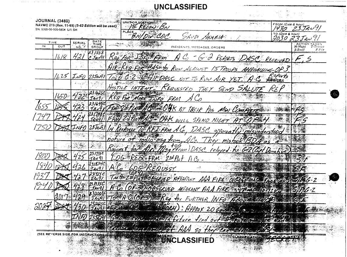 Document 4 f:/Week-38/BX600020/COMMAND CHRONOLOGY 1ST RECONNAISSANCE BATTALION JAN - MAR 1991/1st recon bn journal 23 jan 91:12069615401020