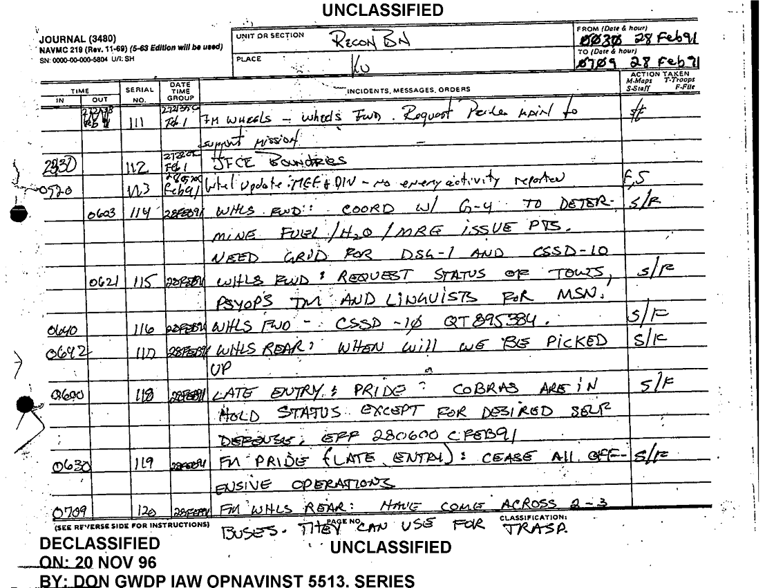 Document 5 f:/Week-38/BX600020/COMMAND CHRONOLOGY 1ST RECONNAISSANCE BATTALION JAN - MAR 1991/1st recon bn journal 28 feb 91:12069615401327