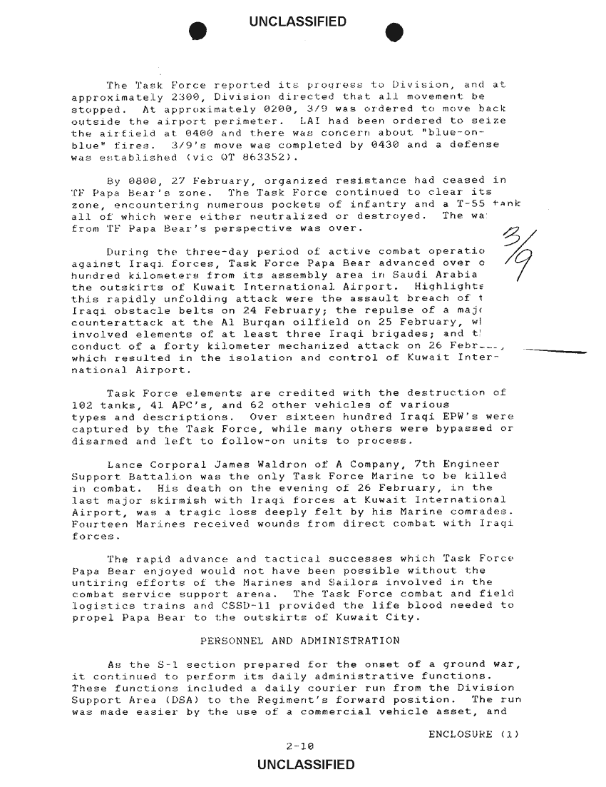 Document 19 f:/Week-33/BX600005/COMMAND CHRONOLOGY 1ST MARINES FEB 1991/narrative summary section 2:1217961001283