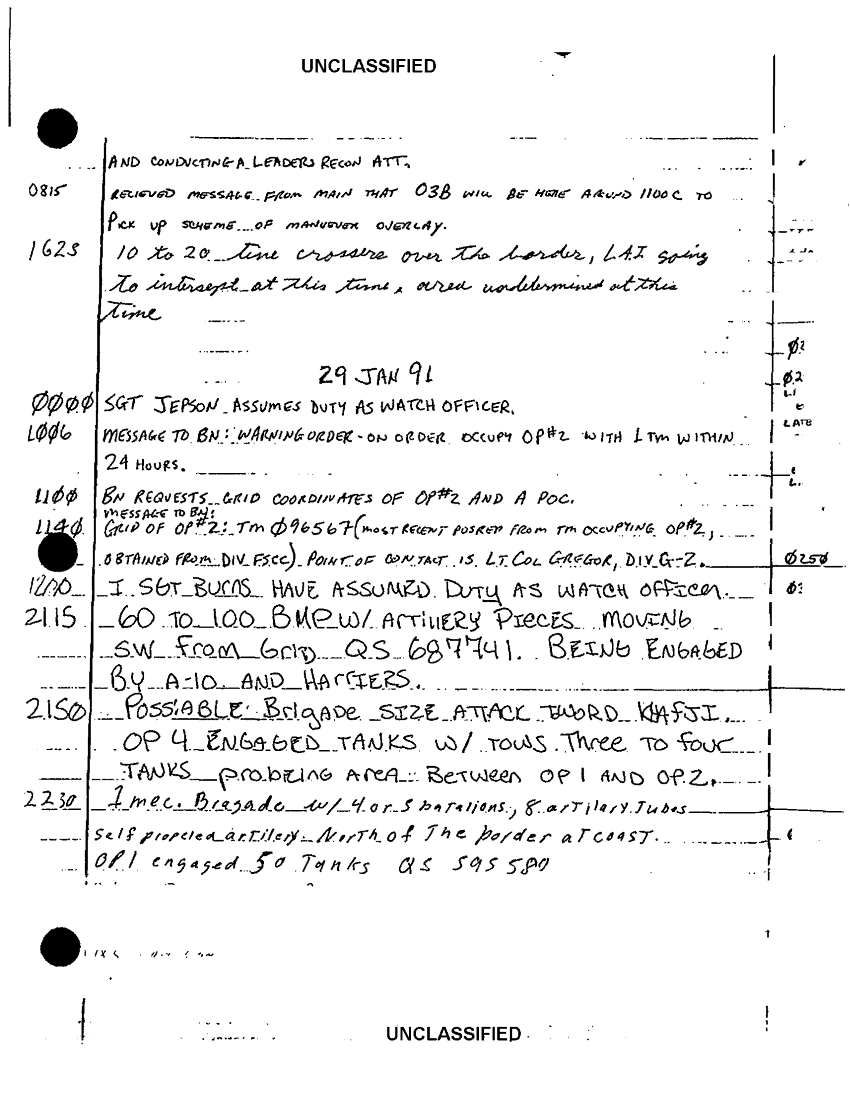 Document 24 f:/Week-42/BX600017/COMMAND CHRONOLOGY RECONNAISSANCE BATTALION JAN - FEB 1991 1 OF 2/unknown watch log 17 jan 91:12179610015023