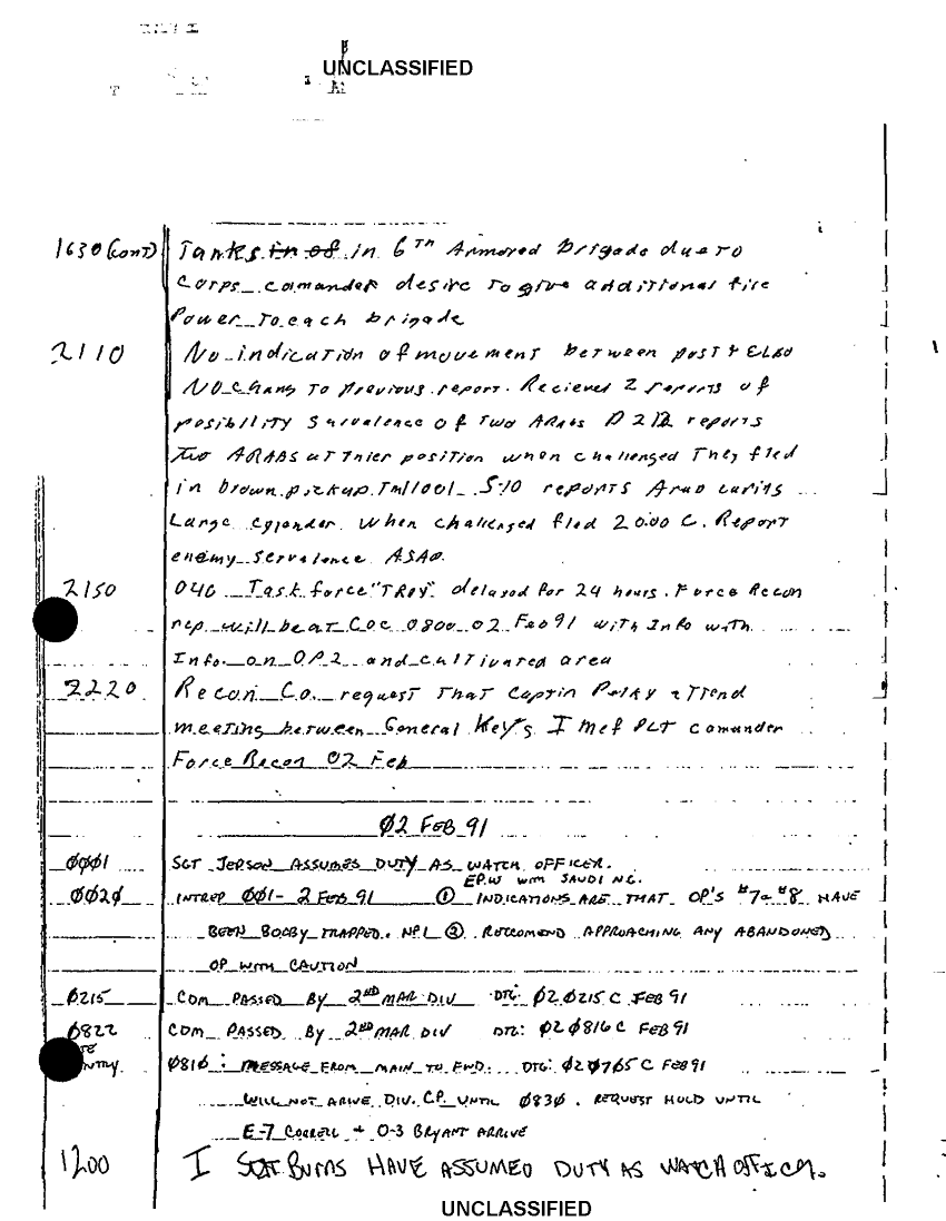 Document 24 f:/Week-42/BX600017/COMMAND CHRONOLOGY RECONNAISSANCE BATTALION JAN - FEB 1991 1 OF 2/unknown watch log 17 jan 91:12179610015023