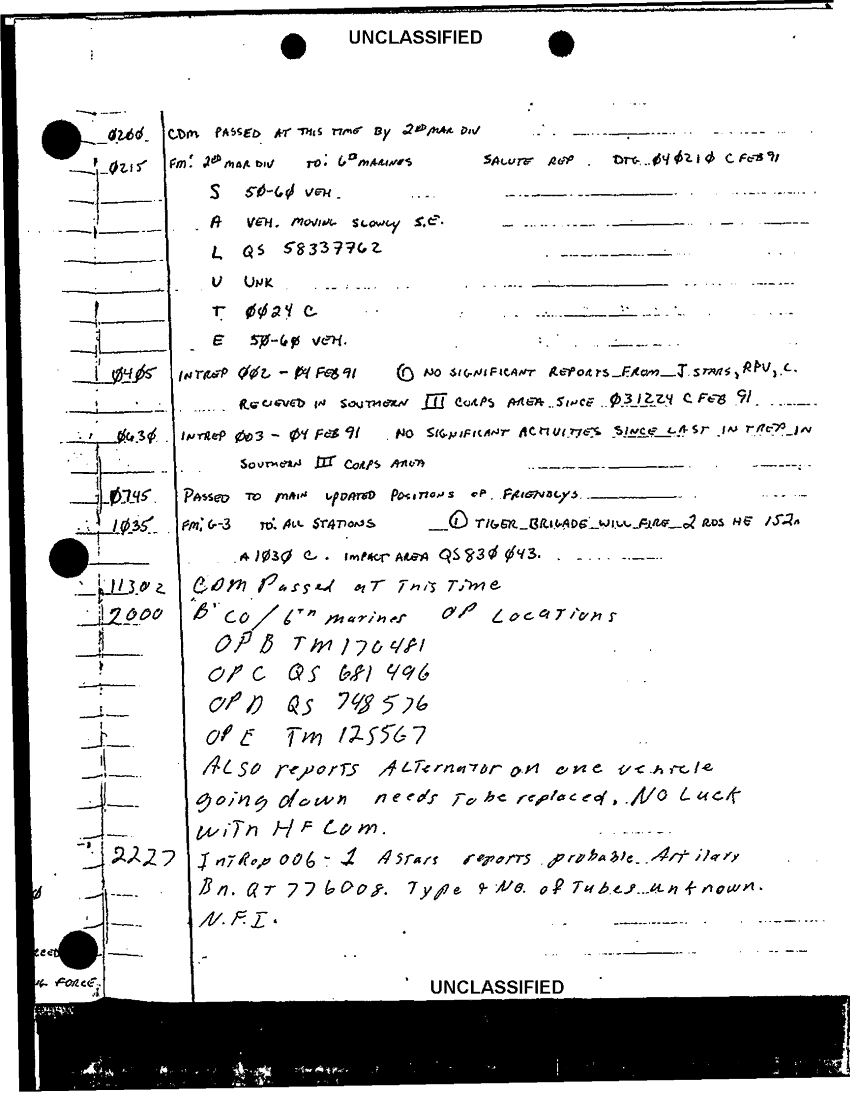 Document 24 f:/Week-42/BX600017/COMMAND CHRONOLOGY RECONNAISSANCE BATTALION JAN - FEB 1991 1 OF 2/unknown watch log 17 jan 91:12179610015023