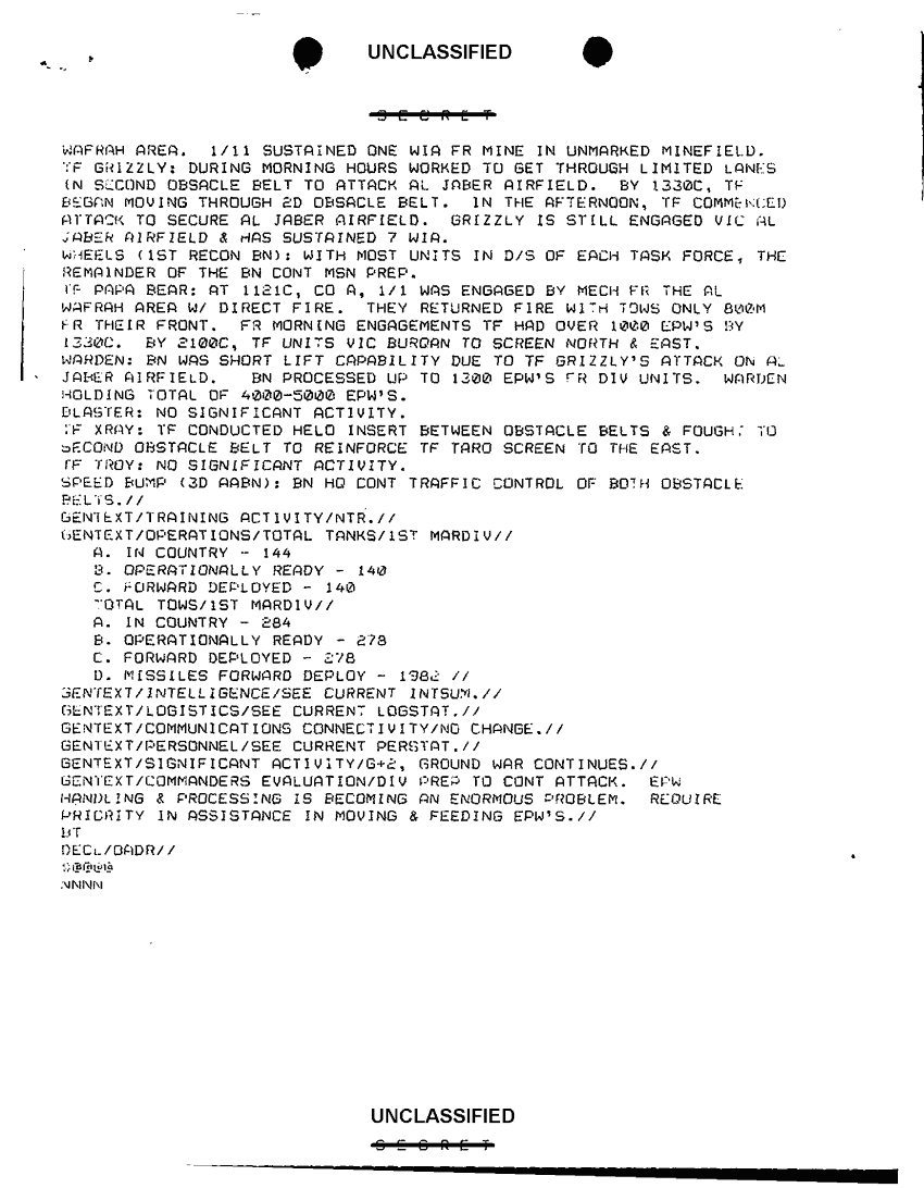 Document 4 f:/Week-43/BX600056/1ST MARDIV JOURNAL ENTRIES 4686-4814 FEB 91 SEC 2 OF 2/sitrep first mardiv 26 feb 91:1217961001316