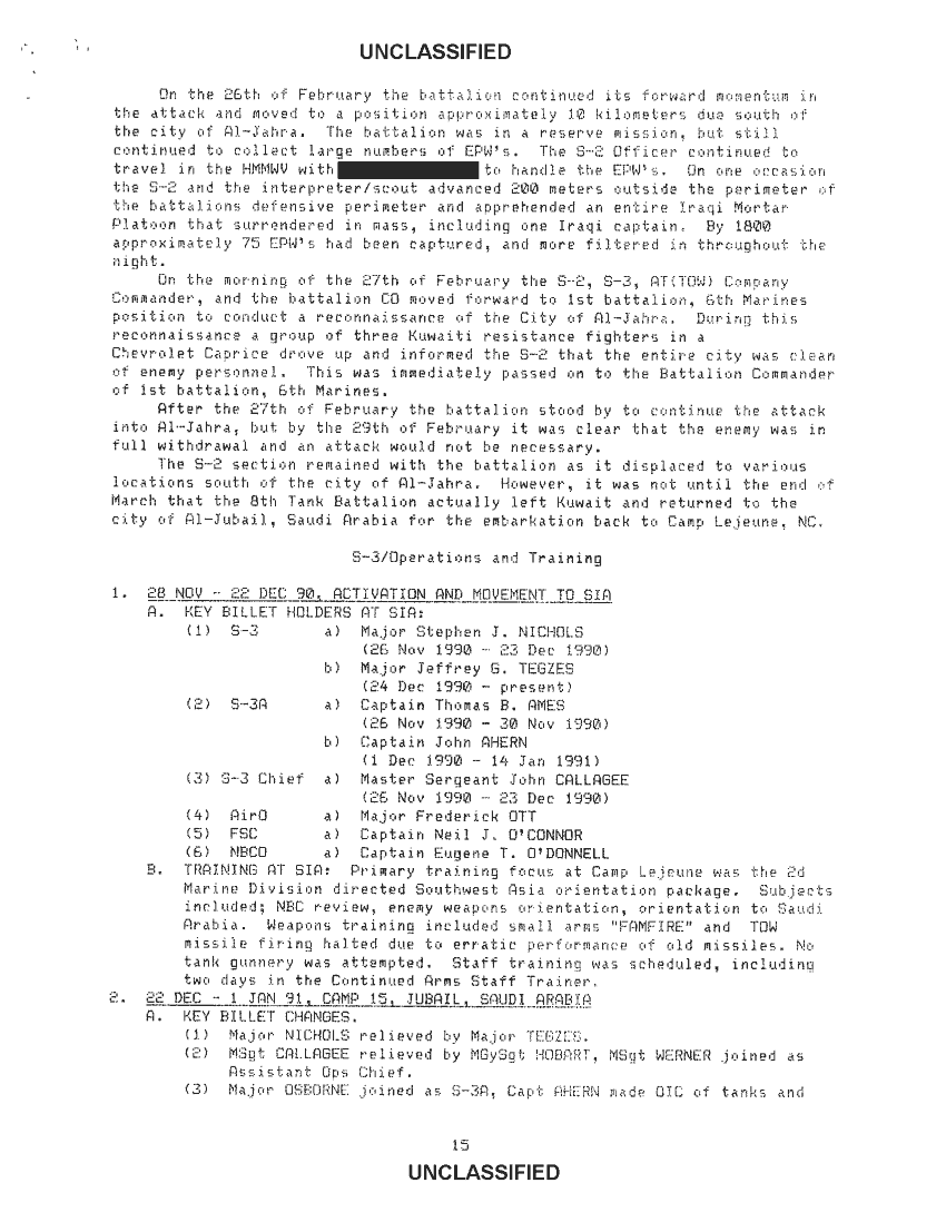 Document 60 f:/Week-34/BX600007/COMMAND CHRONOLOGY 8TH MARINES APRIL - JUNE 1990/8th tank bn command chronology nov 90 to mar 91:01029709504216