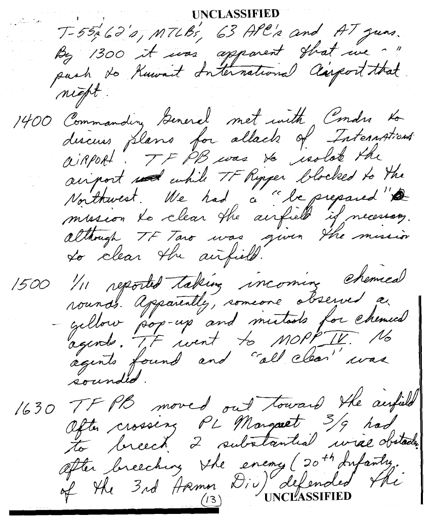 Folder Title = 1ST MARDIV DESERT STORM COMBAT HISTORY NOTES D-3 - D+5