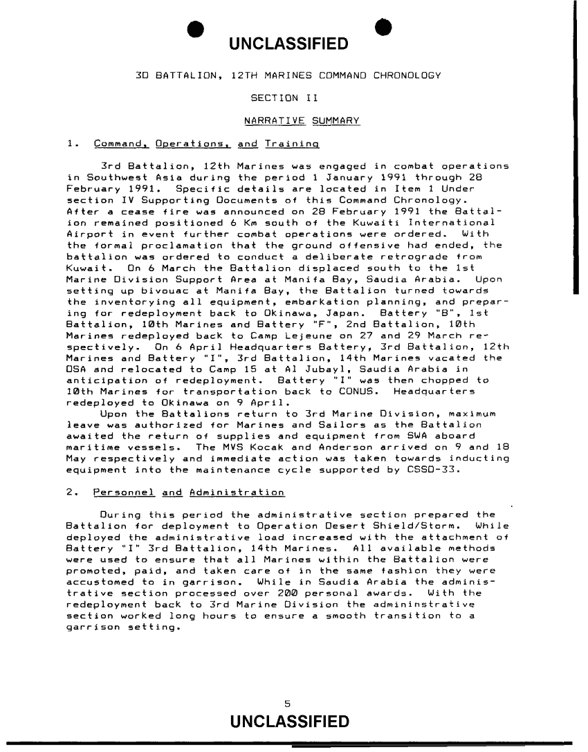 Document 12 f:/Week-38/BX600025/COMMAND CHRONOLOGY 3RD BATTALION 12TH MARINE REGIMENT JAN - JUN 1991/command chronology index:01029709504418