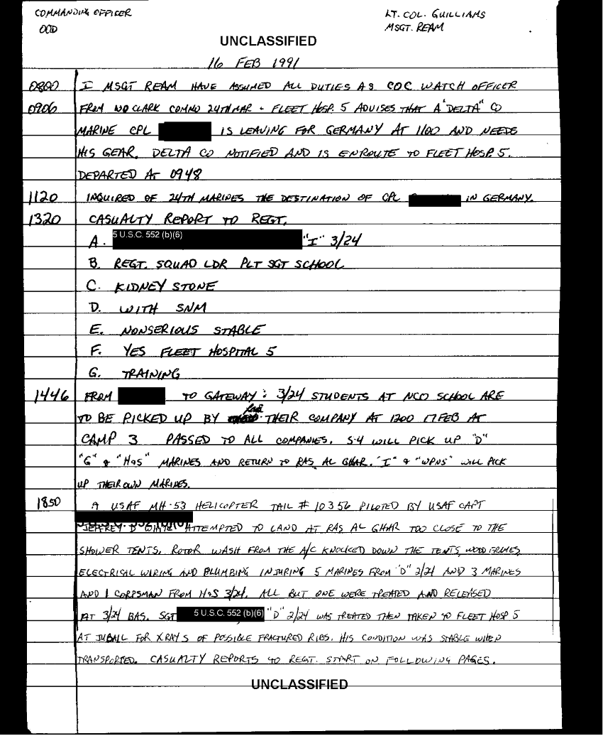 Document 103 f:/Week-35/BX600013/COMMAND CHRONOLOGY 3RD BATTALION 24TH MARINES JAN - MAR 1991 4 OF 4/handwritten log:0102970950272