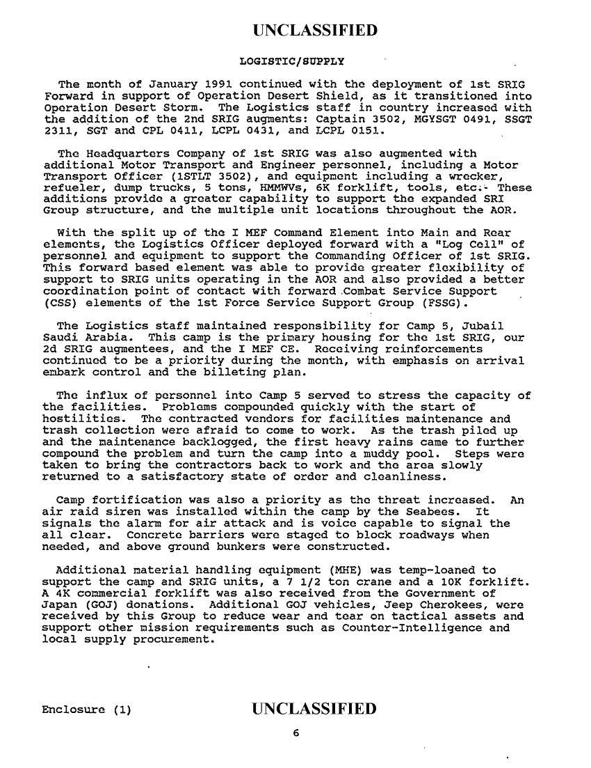 Document 6 f:/Week-38/BX600020/COMMAND CHRONOLOGY 1ST SURVEILLANCE RECON INTEL GROUP DEC 19/command operation and training 31 jan 91:0102970950293