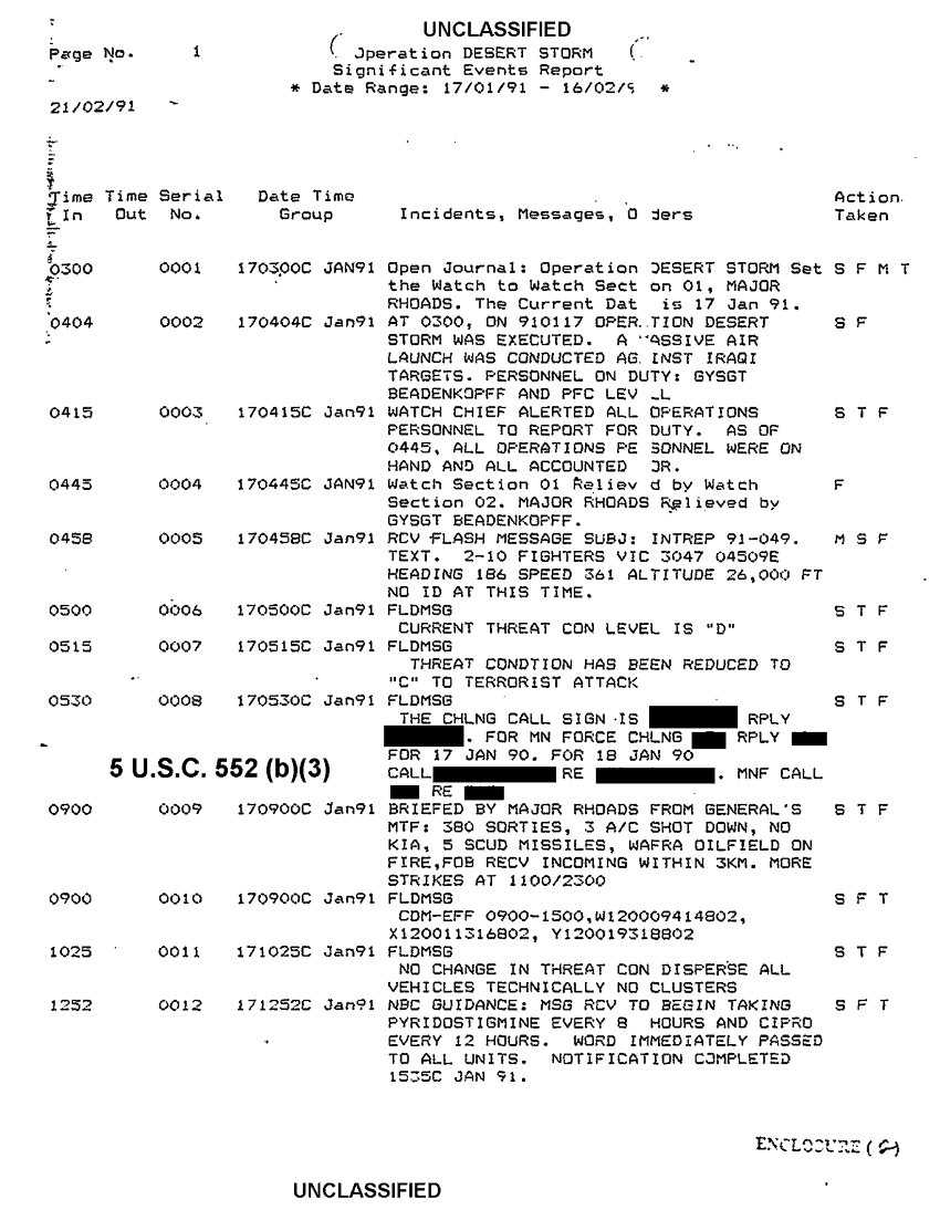 Document 4 f:/Week-38/BX600020/COMMAND CHRONOLOGY 1ST SURVEILLANCE RECON INTEL GROUP JAN 1991 2 OF 2/significant events report 17 jan 91 16 feb 91 d:01029709503711