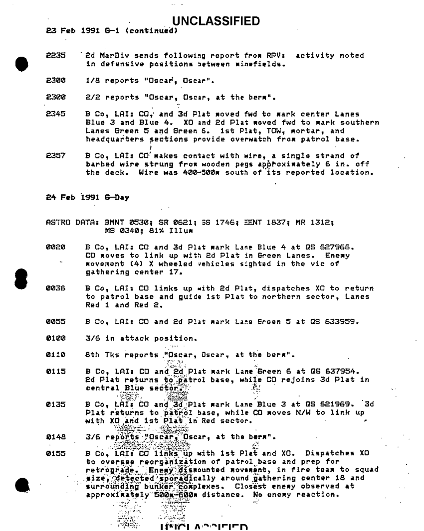 Document 47 f:/Week-51/BX600094/BATTLE ASSESSMENT DOCUMENTATION TABS B-M/6th marine regiment sequential listing of significant events:03249710491612