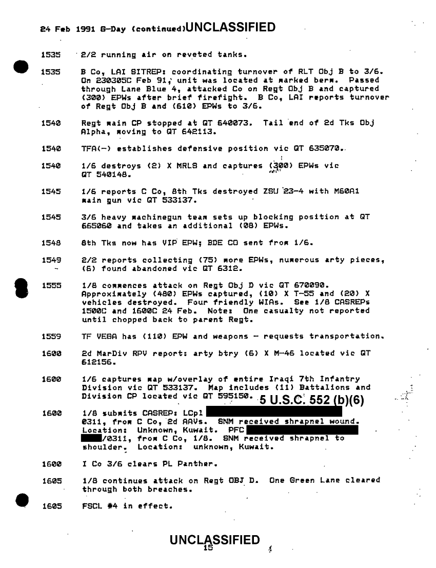 Document 47 f:/Week-51/BX600094/BATTLE ASSESSMENT DOCUMENTATION TABS B-M/6th marine regiment sequential listing of significant events:03249710491612