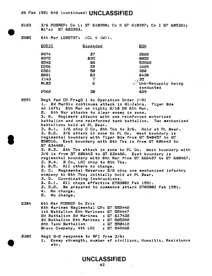 Document 47 f:/Week-51/BX600094/BATTLE ASSESSMENT DOCUMENTATION TABS B-M/6th marine regiment sequential listing of significant events:03249710491612