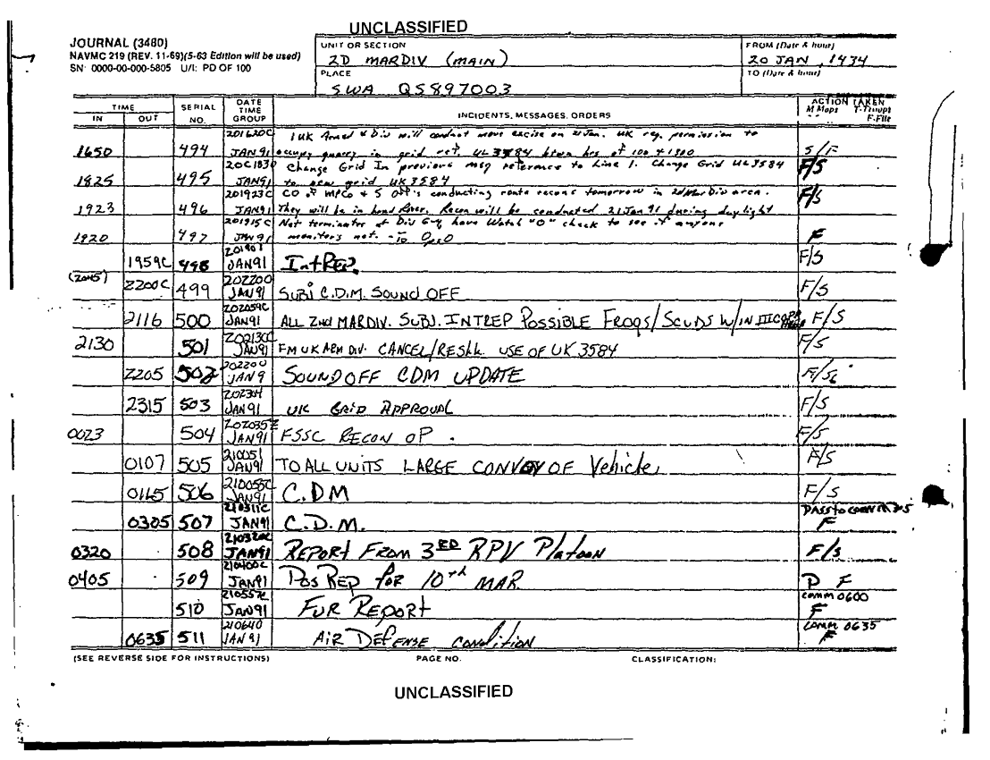 Subject = JOURNAL 2D MARDIV SUPPORTING DOCS SEP 90