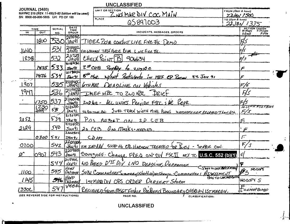 Subject = JOURNAL 2D MARDIV SUPPORTING DOCS SEP 90