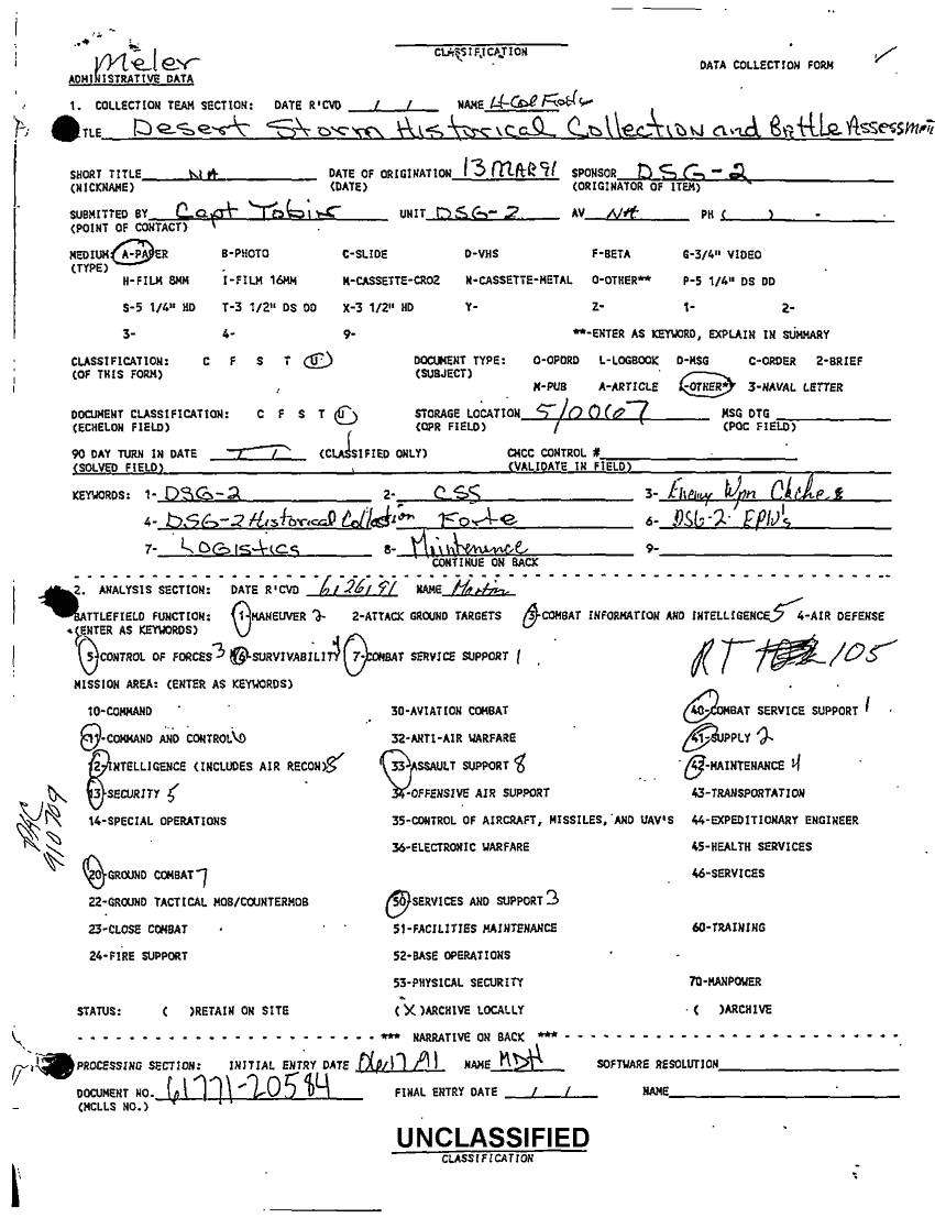 Document 24 f:/Week-62/BX600126/DSG-2 FIELD MSGS FEB 91 WDID SWA 082 MCCDC PART 4 OF 8/desert storm historical collection and battle assessment 13 mar:03249710492429