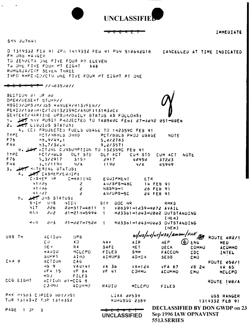 Document 5 f:/Week-36/BX300058/FOLDER 9 MESSAGE FILES FOR 10-14 FEB 1991 CNA 2744 2 OF2/opsum uss ranger 13feb91:100196125226