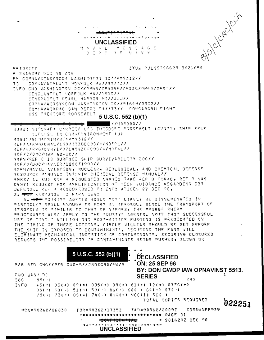 Document 3 f:/Week-35/BX300040/COMNAVSEASYSCOM VARIOUS MESSAGES CNA 2945/acft carrier uss roosevlet ship self 281629z d:100196125227