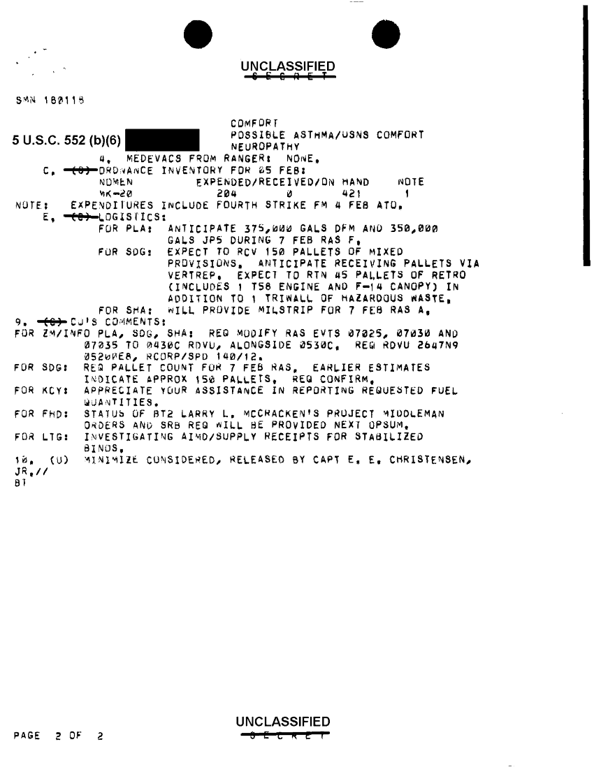Folder Title = FOLDER 2 MESSAGE FILES FOR 5 FEB 1991 CNA 2758 1OF2