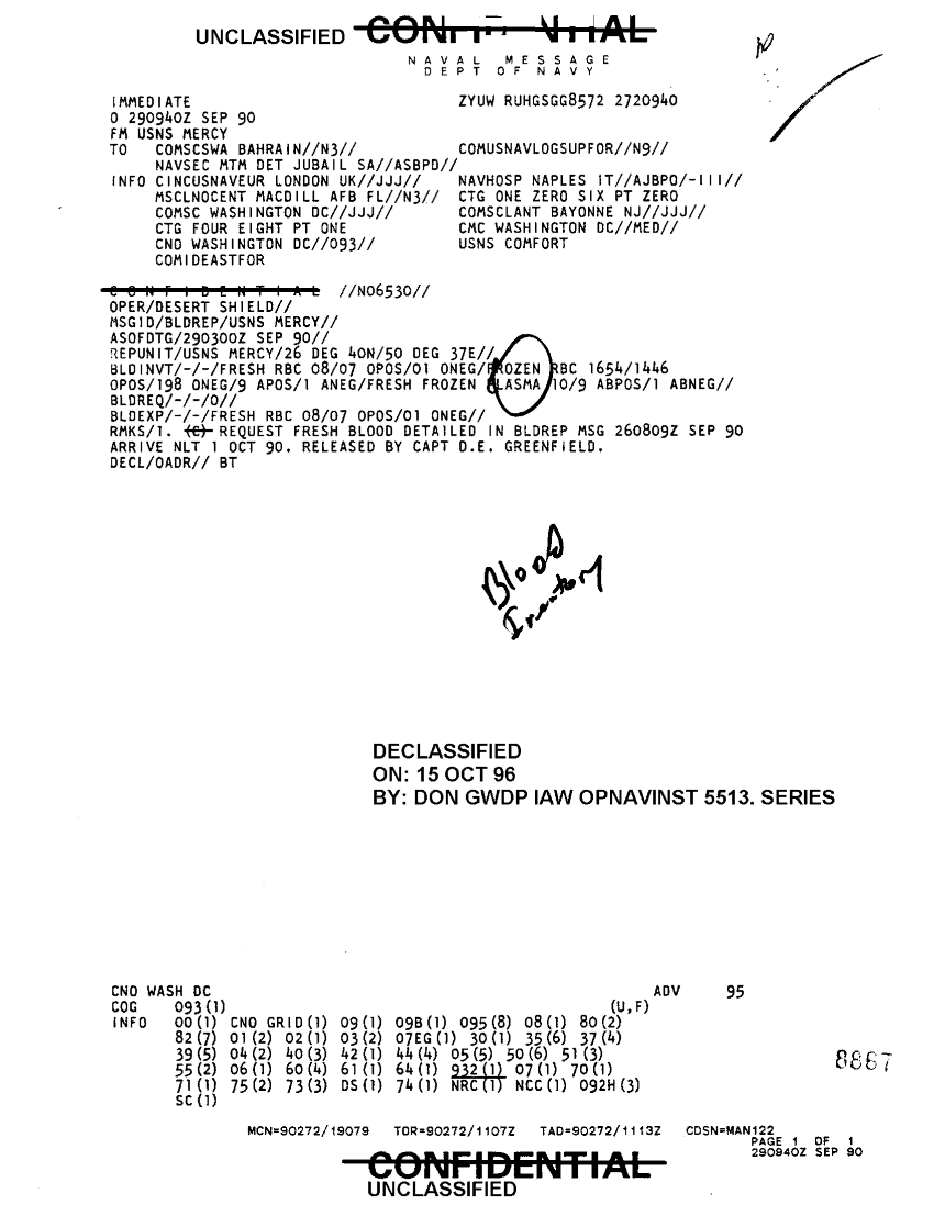 Subject = BLDREP USNS MERCY 29 SEP 90