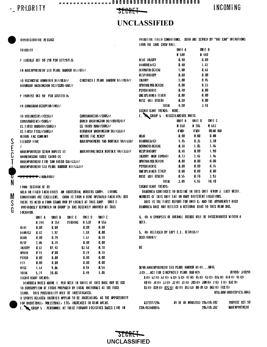 Document 3 f:/Week-41/BX300104/COMUSNAVLOGSUPFOR NAVY MEDICAL MESSAGE FILES 1990-1991 CNA 2910/disease surveillance wk of 7 to 13 oct 90:11049611393122