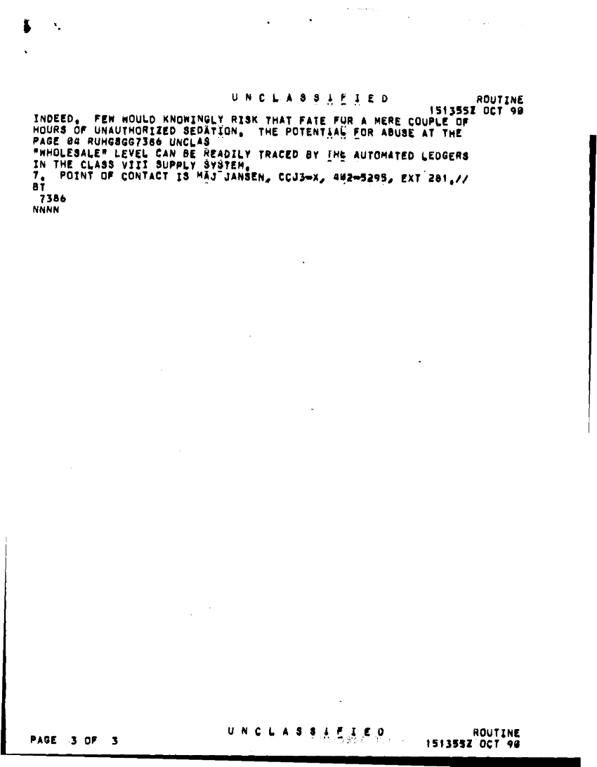 Document 3 f:/Week-41/BX300092/FOLDER 1 LOGISTICS AND MEDICAL RELATED MESSAGES SEP 90 - MAR 91 CNA 1690/uscentcom policy on us forces use of diazepam:11049611393724