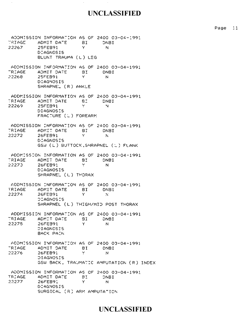 Document 34 f:/Week-42/BX300118/FOLDER 2 - PATIENTS TREATED - AL KHANJAR TRAUMA CENTER MAR 91/admission information as of 2400 03 04 1991:1112:1112961728162
