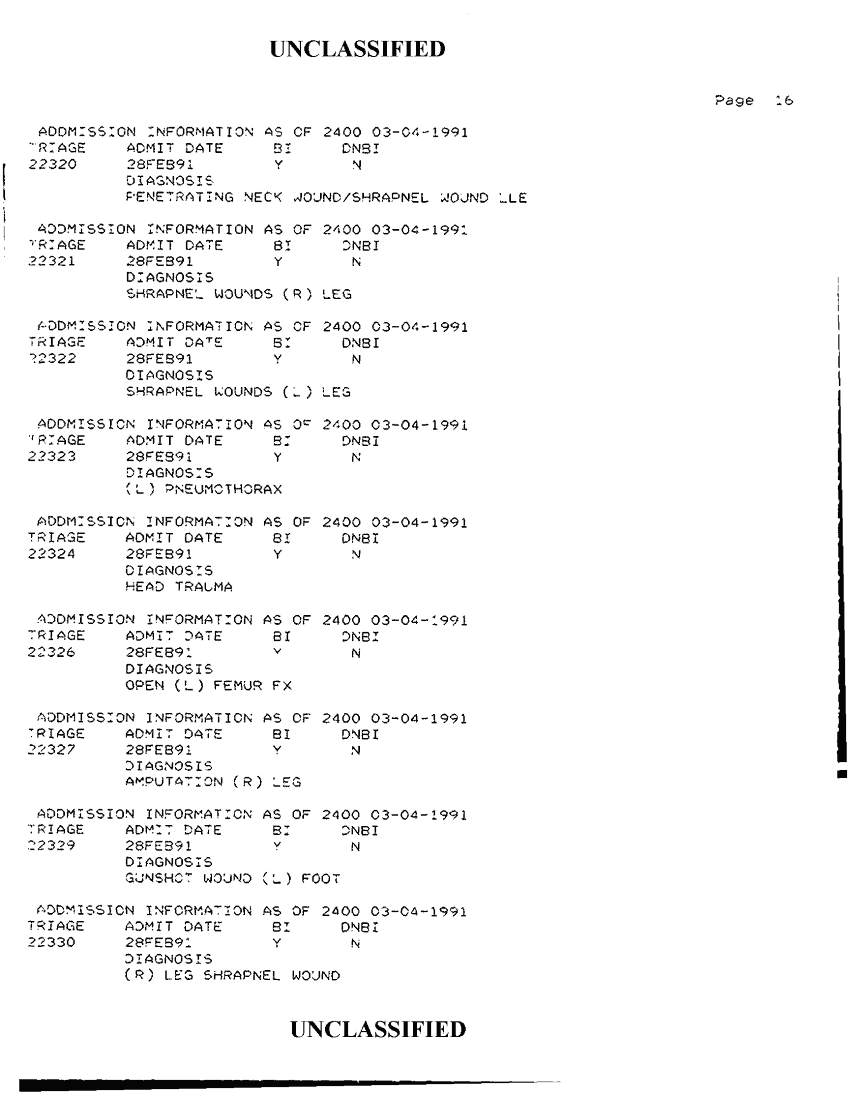 Document 34 f:/Week-42/BX300118/FOLDER 2 - PATIENTS TREATED - AL KHANJAR TRAUMA CENTER MAR 91/admission information as of 2400 03 04 1991:1112:1112961728162