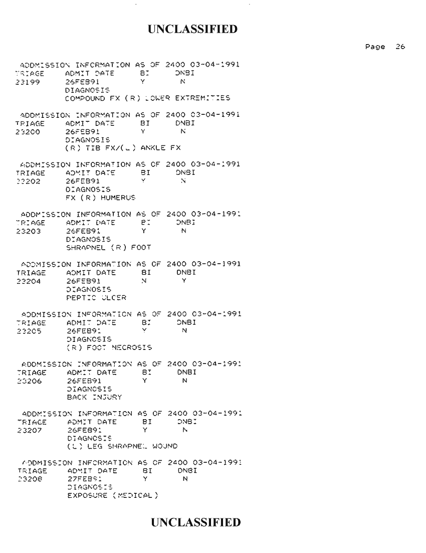 Document 34 f:/Week-42/BX300118/FOLDER 2 - PATIENTS TREATED - AL KHANJAR TRAUMA CENTER MAR 91/admission information as of 2400 03 04 1991:1112:1112961728162