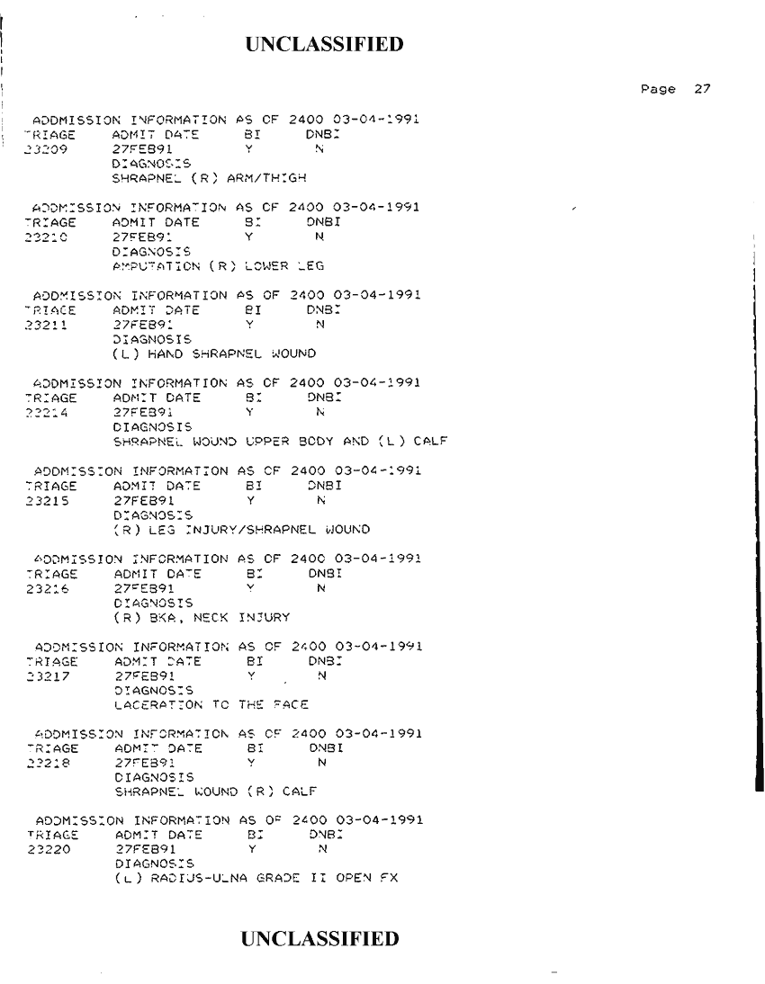 Document 34 f:/Week-42/BX300118/FOLDER 2 - PATIENTS TREATED - AL KHANJAR TRAUMA CENTER MAR 91/admission information as of 2400 03 04 1991:1112:1112961728162