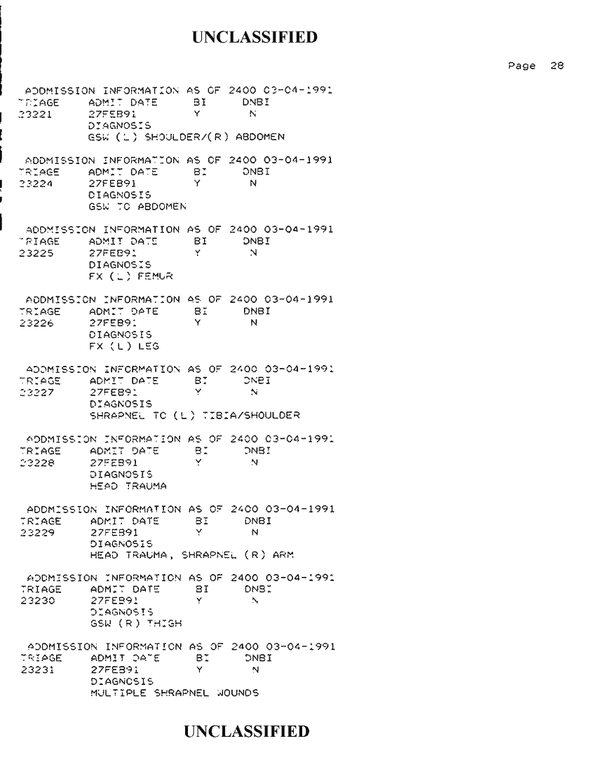 Document 34 f:/Week-42/BX300118/FOLDER 2 - PATIENTS TREATED - AL KHANJAR TRAUMA CENTER MAR 91/admission information as of 2400 03 04 1991:1112:1112961728162
