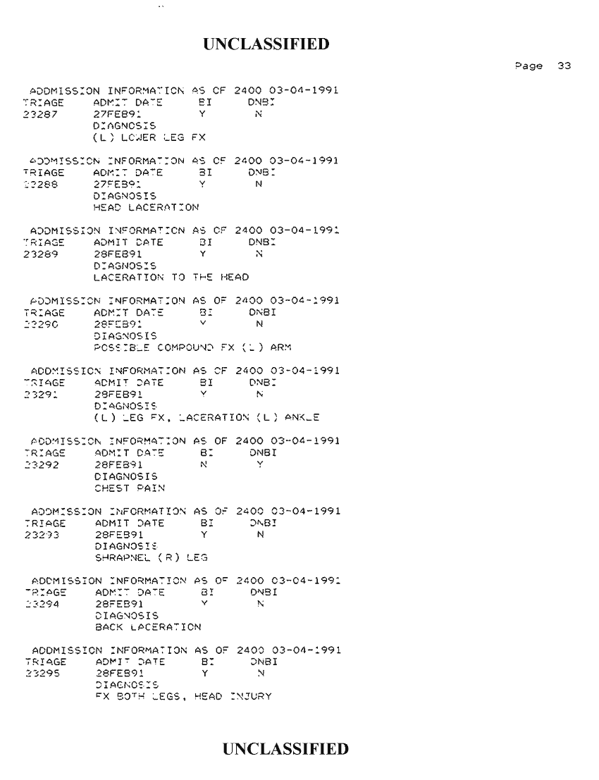 Document 34 f:/Week-42/BX300118/FOLDER 2 - PATIENTS TREATED - AL KHANJAR TRAUMA CENTER MAR 91/admission information as of 2400 03 04 1991:1112:1112961728162