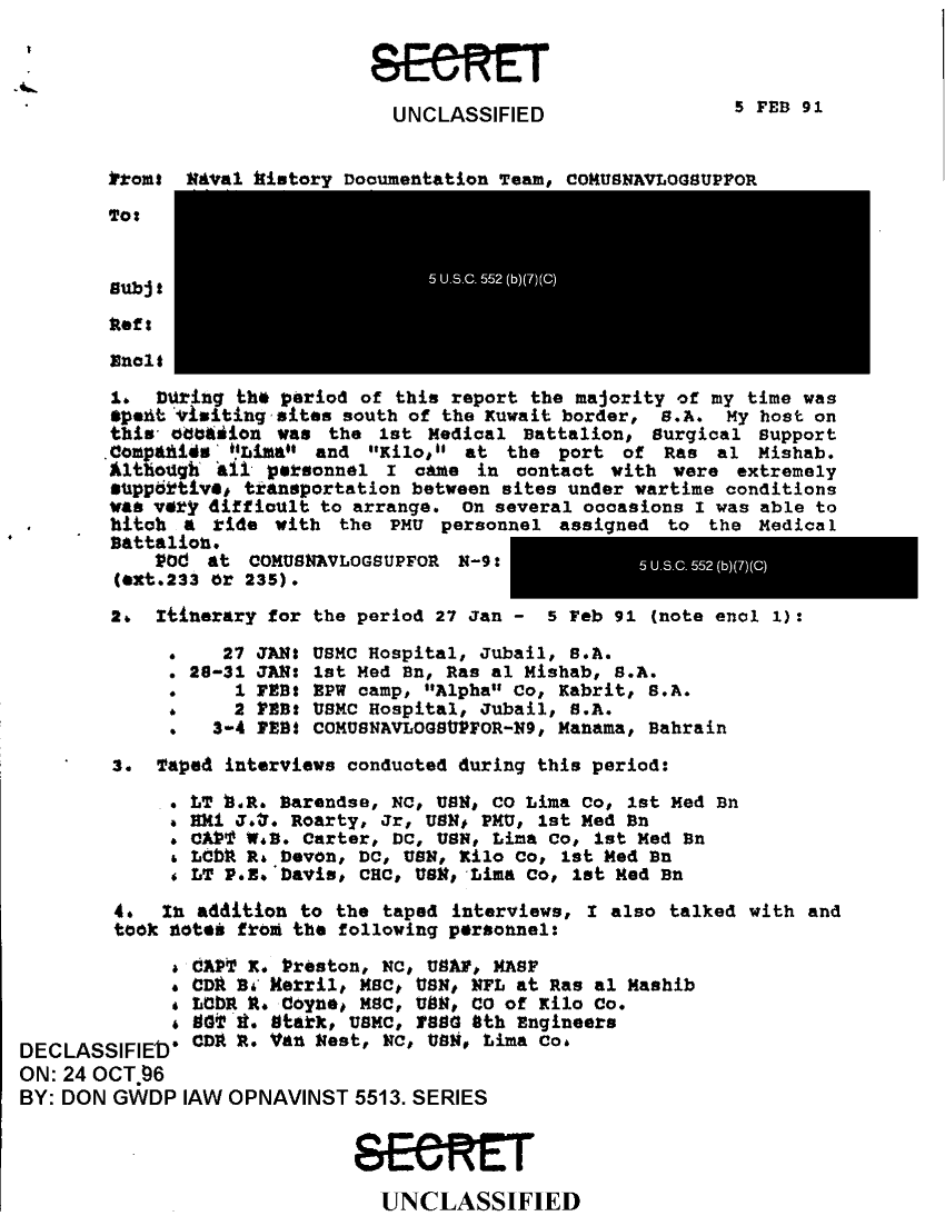 Folder Title = FOLDER 19 - NAVAL HISTORY DOCUMENTATION TEAM SITREPS 2 - 3 JA N 1 - FEB 5 91