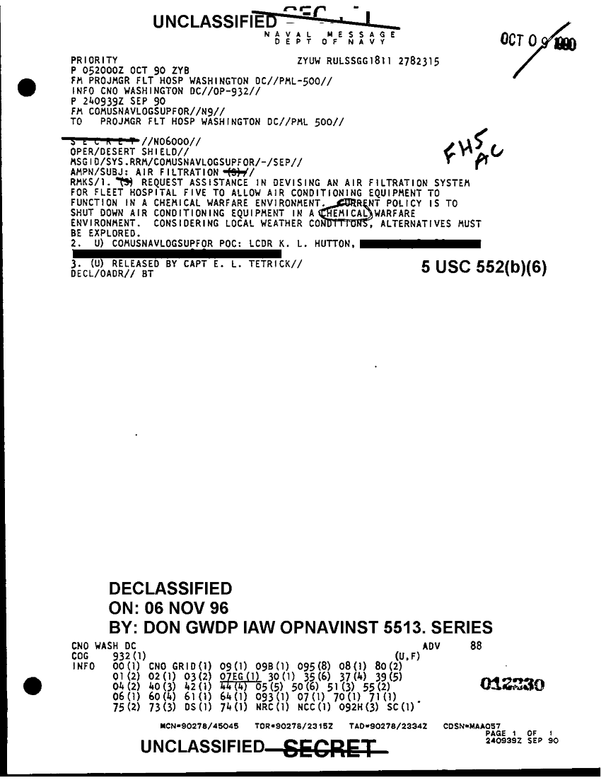 Document 1 f:/Week-41/BX300104/COMUSNAVLOGSUPFOR NAVY MEDICAL MESSAGE FILES 1990-1991 CNA 2910/air filtration 5 oct 90:1122961646568