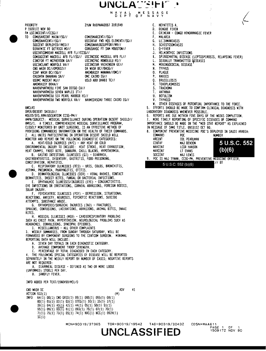 Subject = MEDICAL SURVEILLANCE DURING OPER DESERT SHIELD