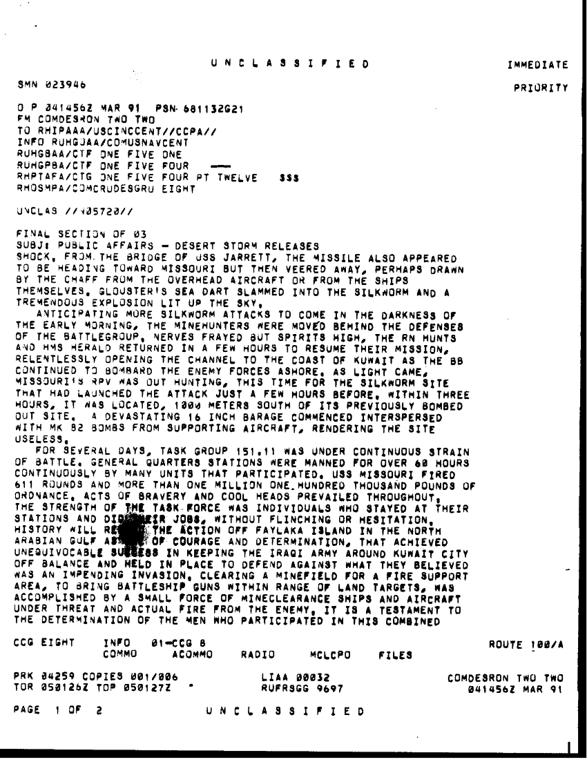Document 8 f:/Week-41/BX300097/FOLDER MESSAGE FILES 20 FEB - 8 MAR 91 CNA 2760 14 OF 14/public affairs desert storm releases:11229616470319