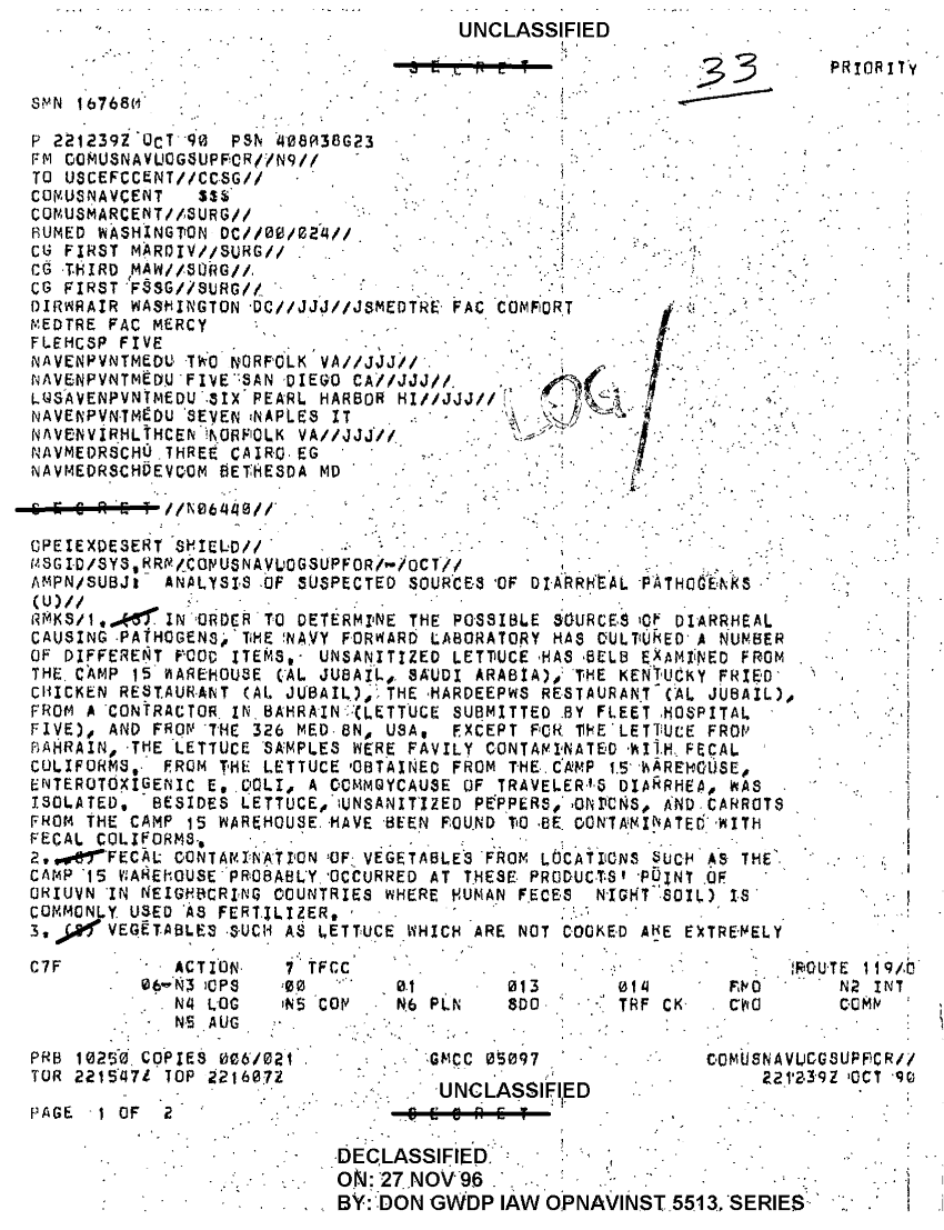 Document 2 f:/Week-42/BX300112/FOLDER 5 OF 20 - COMUSNAVCENT - AUG - OCT 1990 CNA 2762/comusnavlogsupfor diarrheal pathogens 22 oct 9:12179609580821
