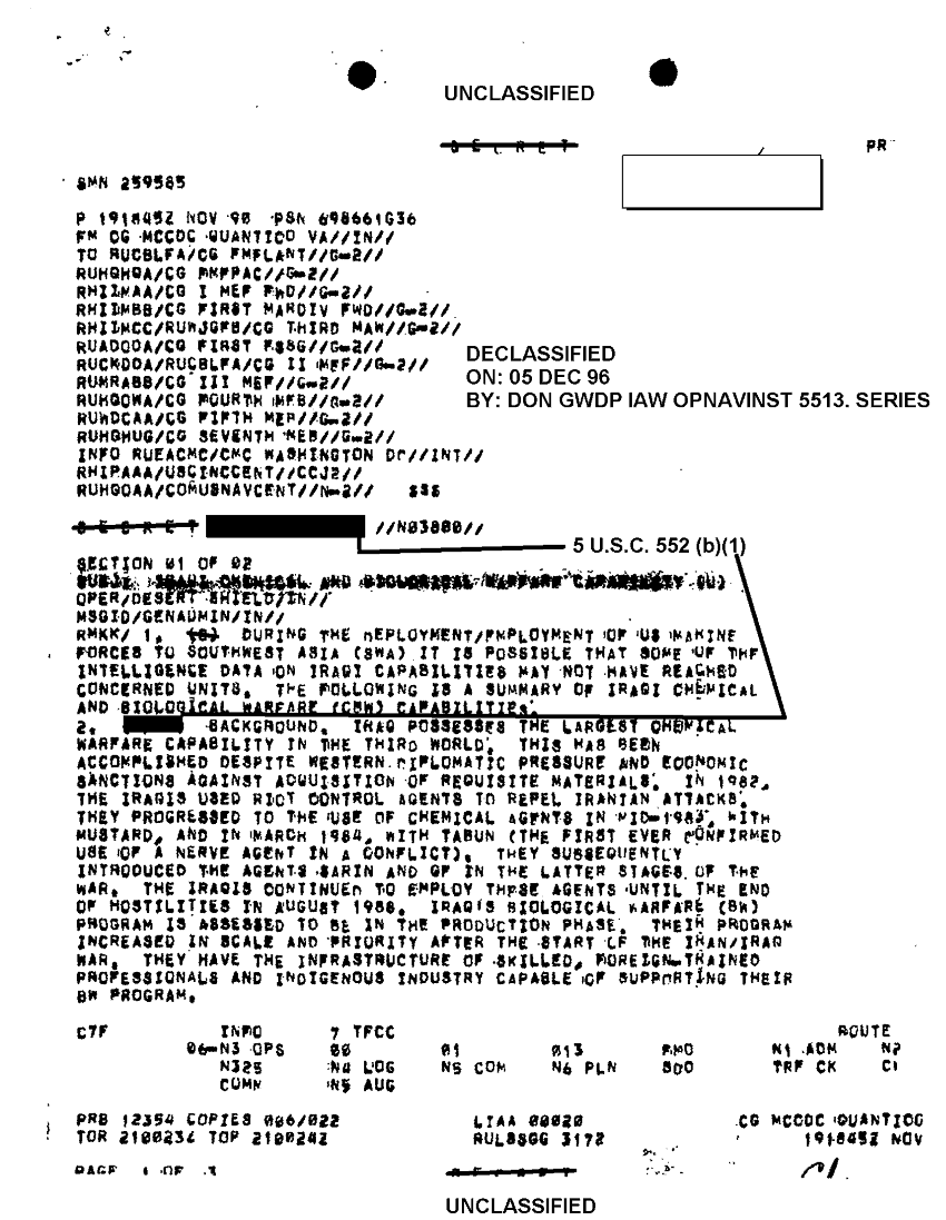 Subject = IRAQI CHEMICAL AND BIOLOGICAL WARFARE CAPIBILITI