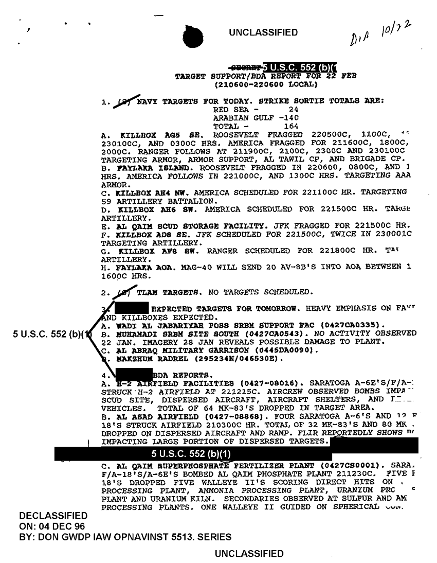 Document 4 f:/Week-45/BX300900/CIA COORDINATION FOLDER 22 OF 26/target support bda report 22 feb 91:1217960957558